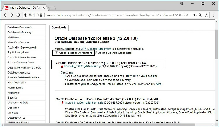 $ ls linuxx64_12201_database.zip $ unzip linuxx64_12201_database.zip