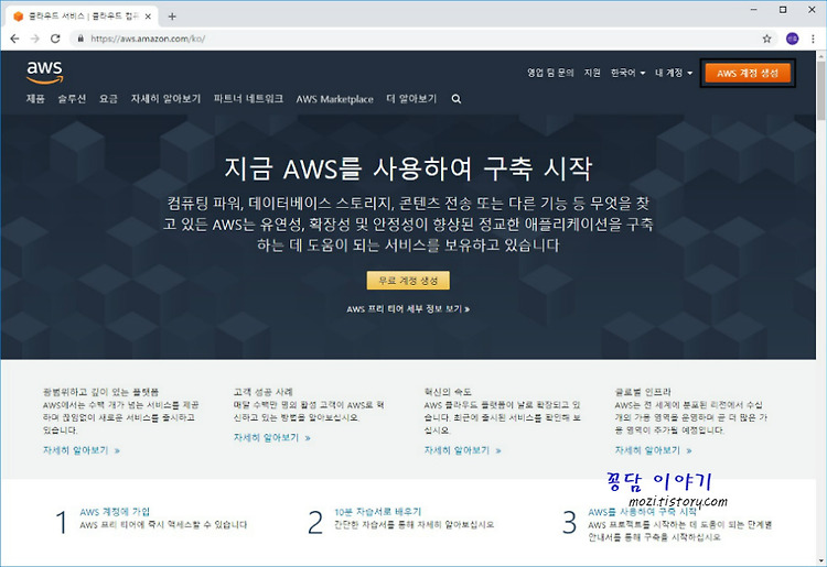 1. https://aws.amazon.com/ko/ 사이트에 접속합니다.