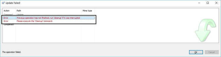 Previous operation has not finished; run 'cleanup' if it was interrupted