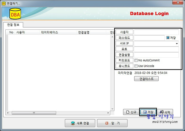 4. [ 저장 ] 버튼을 눌러 연결정보에 입력한 값을 저장합니다.