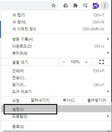 5. 크롬창을 새로 실행한 후 '설정'을 클릭합니다.