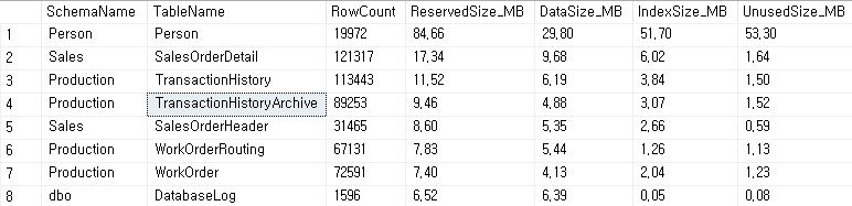 sp_spaceused 'Production.TransactionHistoryArchive'