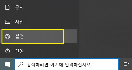 1. 시작 - 설정을 클릭합니다.