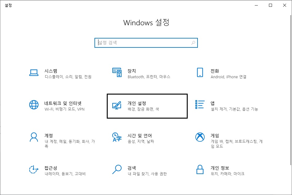 2. 개인 설정을 클릭합니다.