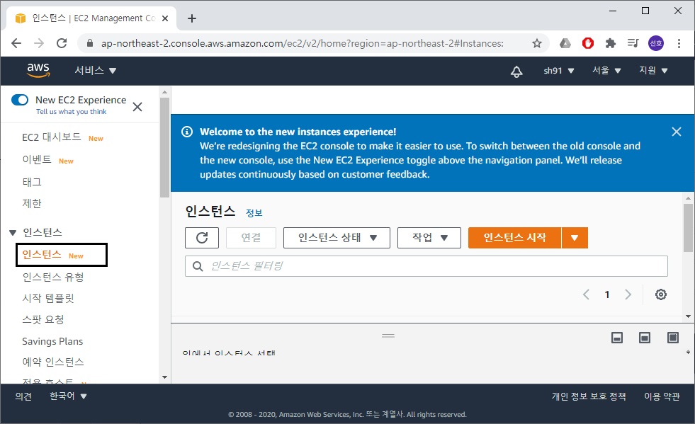 인스턴스를 생성하는 방법은 다른 포스팅에서 다루겠습니다.