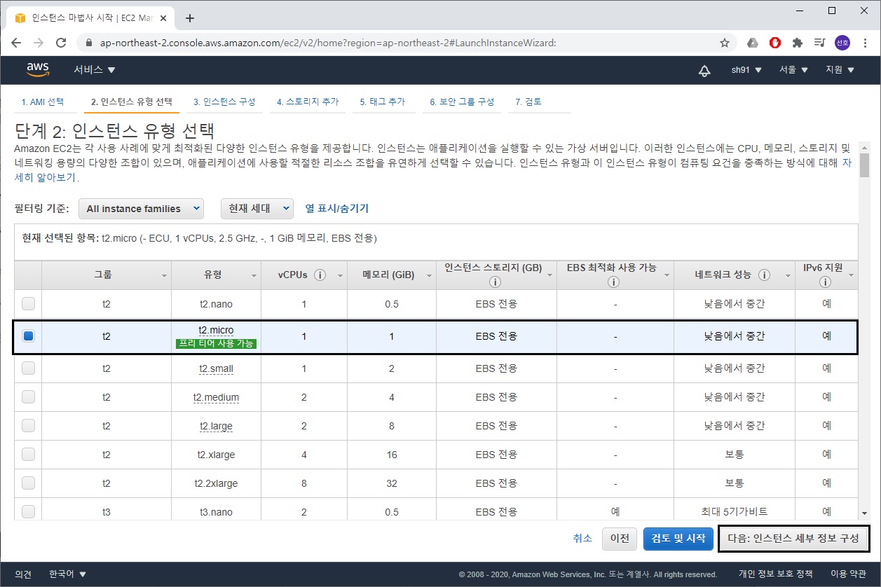 2. 인스턴스 유형 선택