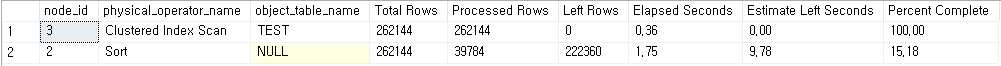dm_exec_query_profiles 는 쿼리가 실행되는 동안 실시간 쿼리 진행 상황을 모니터링 하는 동적뷰 입니다.