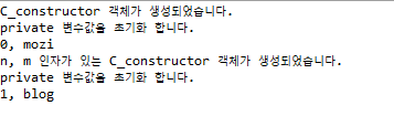 System.out.println ("n, m 인자가 있는 C_constructor 객체가 생성되었습니다.");