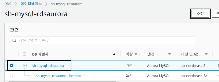 1. 인스턴스에 매핑된 파라미터 그룹으로 들어갑니다.