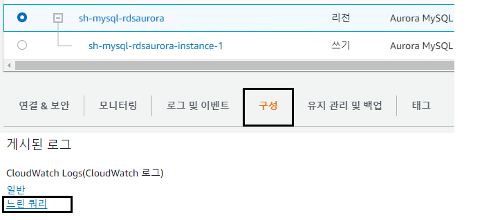 cloudwatch 에 느린쿼리로그 설정하는 방법