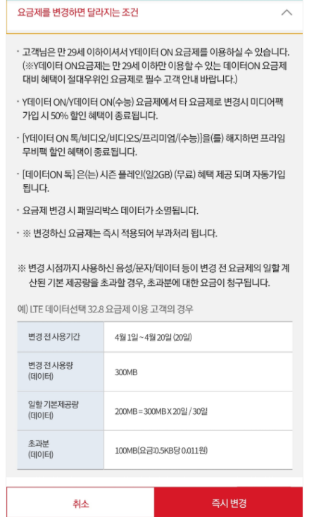 4. 이건 사용자 잘못으로도 볼수 있지만.. 요금제를 변경할 때 유의사항을 얼마나 자세히 읽고 하나하나 다 따질까??..