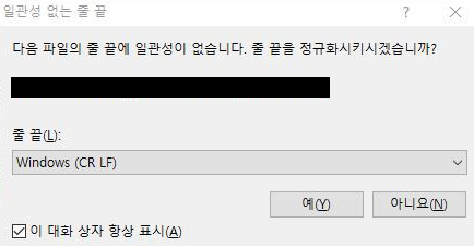 다음 파일의 줄 끝에 일관성이 없습니다. 줄 끝을 정규화시키시겠습니까?
