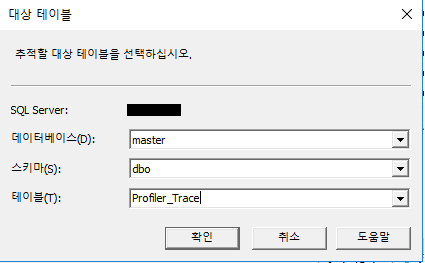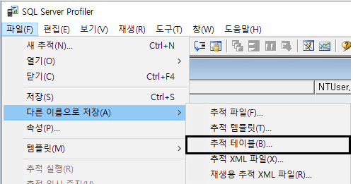 이 Profiler 를 추적 테이블로 저장합니다.