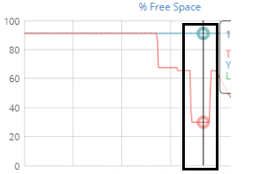 추적플래그를 활성화 하지 않았을 때는, 좌측 네모박스처럼 파일크기가 한번에 할당됩니다.