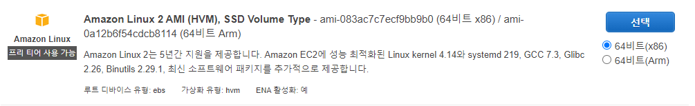 여기에서는 Amazon Linux 2 AMI 를 선택합니다.
