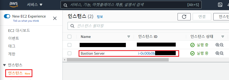 인스턴스는 AWS 명령줄 인터페이스(AWS CLI)를 사용할 수 있는 Bastion 서버로 진행합니다.