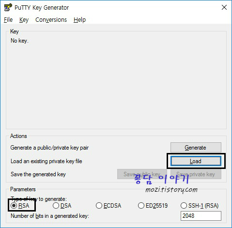 3. RSA 를 선택한 뒤 Load 버튼을 선택합니다.