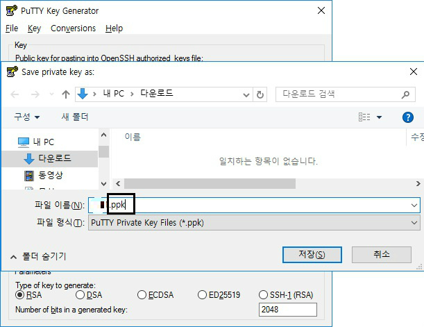 8. ppk 확장자로 파일을 저장합니다.