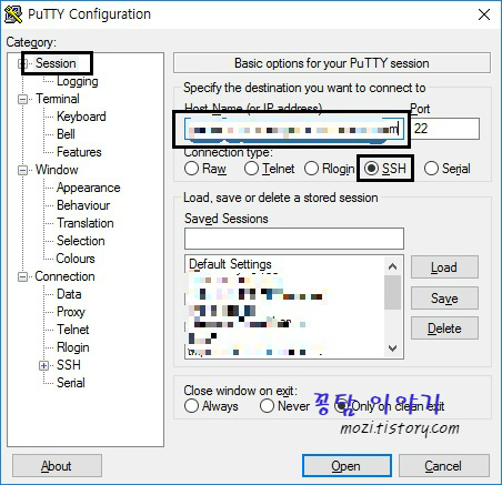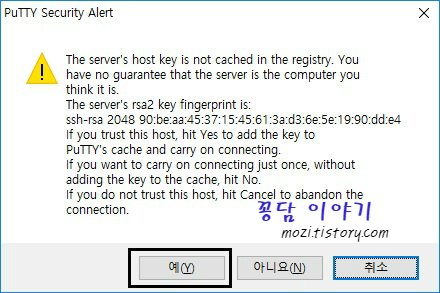 Putty 로 접속하는 방법