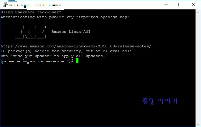 18. AWS EC2 서버에 정상적으로 접속되었습니다.