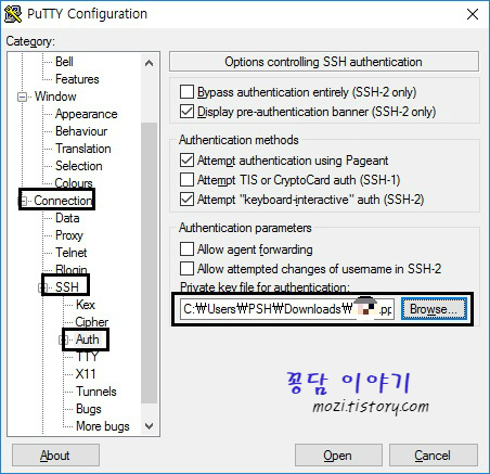 14. Browse 버튼을 클릭한 뒤 만들었던 ppk 파일을 등록합니다.