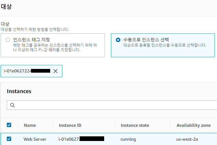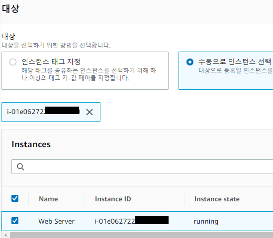 대상에 CloudWatch 에이전트를 시작할 EC2 를 선택합니다.