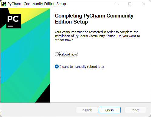 재부팅이 완료 후 Pycharm 을 실행해서 사용하면 됩니다.