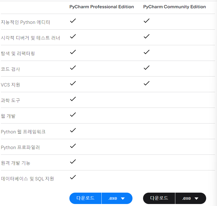 이러한 소프트웨어 중 대표적으로 PyCharm 이 있고 무료버전과 유료버전으로 나뉩니다.