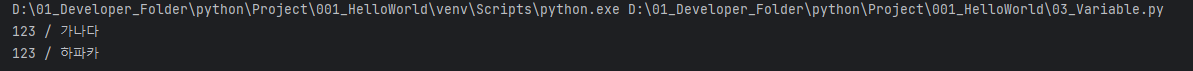 하나의 변수에 정수나 문자열 등 여러 형의 값을 바꿔 대입해도 프로그램에는 문제가 없습니다.