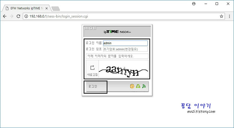 1. 192.168.0.1 에 접속합니다.